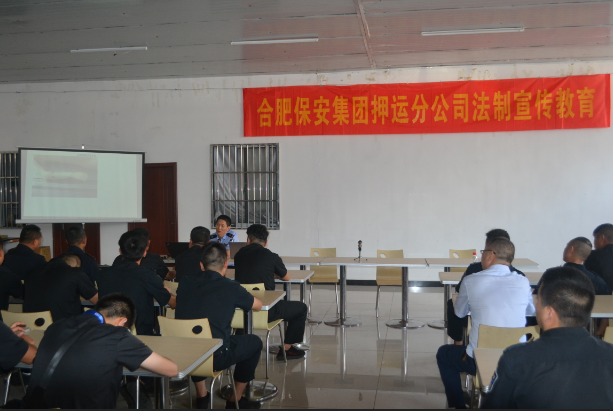 为进一步增强全体守押人员法律意识和法制观念,促进守押人员遵纪守法的自觉性和主动性,预防和减少员工违法犯罪行为的发生,7月18日,押运分公司在西门基地举行法制宣传活动,活动邀请到合肥市公安局高新分局刑警大队副大队长顾胜涛警官来我司,为员工开设法制宣传专题讲座活动。